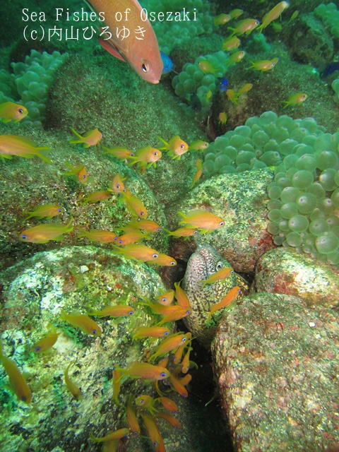 幼魚。岩の間の魚はウツボ。